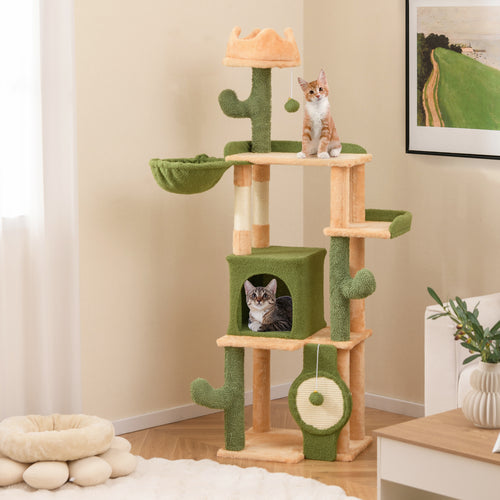 Modern Cat Tower with Top Perch and Removable Cushion-Natural -